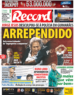Benfica passa em Guimarães com "chouriço" (Rui Vitória dixit) de Cardozo, Jesus dá festival no final da partida, polícias, seguranças e tudo a que temos direito, foi tudo nas horas. Sporting travado, mais uma vez, pelo Rio Ave, com penalty que árbitro não vê e que Jardim, com elegância, não valoriza. Porto empata no Estoril, depois de ter estado a ganhar duas vezes, numa excelente partida de futebol, com um grande Estoril e um árbitro míope...